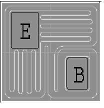 芯片背極為集電極,基極與發射極的鍵合點位置見右圖
