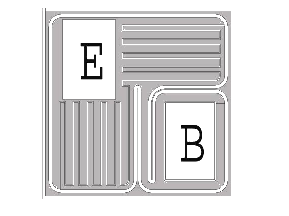 芯片背面為集電極,基極與發射極的鍵合點位置見右圖